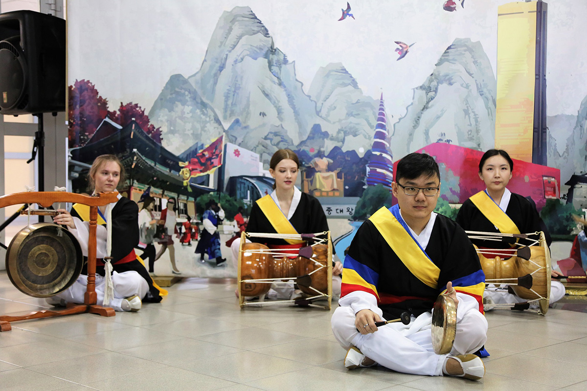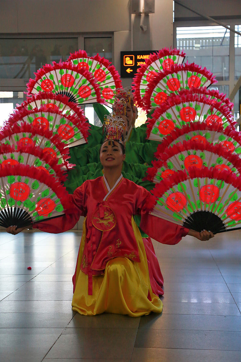 Культурная программа Дня Кореи в аэропорту началась барабанным шоу в исполнении студентов Корейского центра МИЭЛ ИГУ. В рамках мероприятия работала экспозиция ручной вышивки по шелку и живописных работ корейских художников, представленная арт-галереей Dias. Специальным подарком для пассажиров и гостей аэропорта стали яркие номера студии танца «Конопушки».