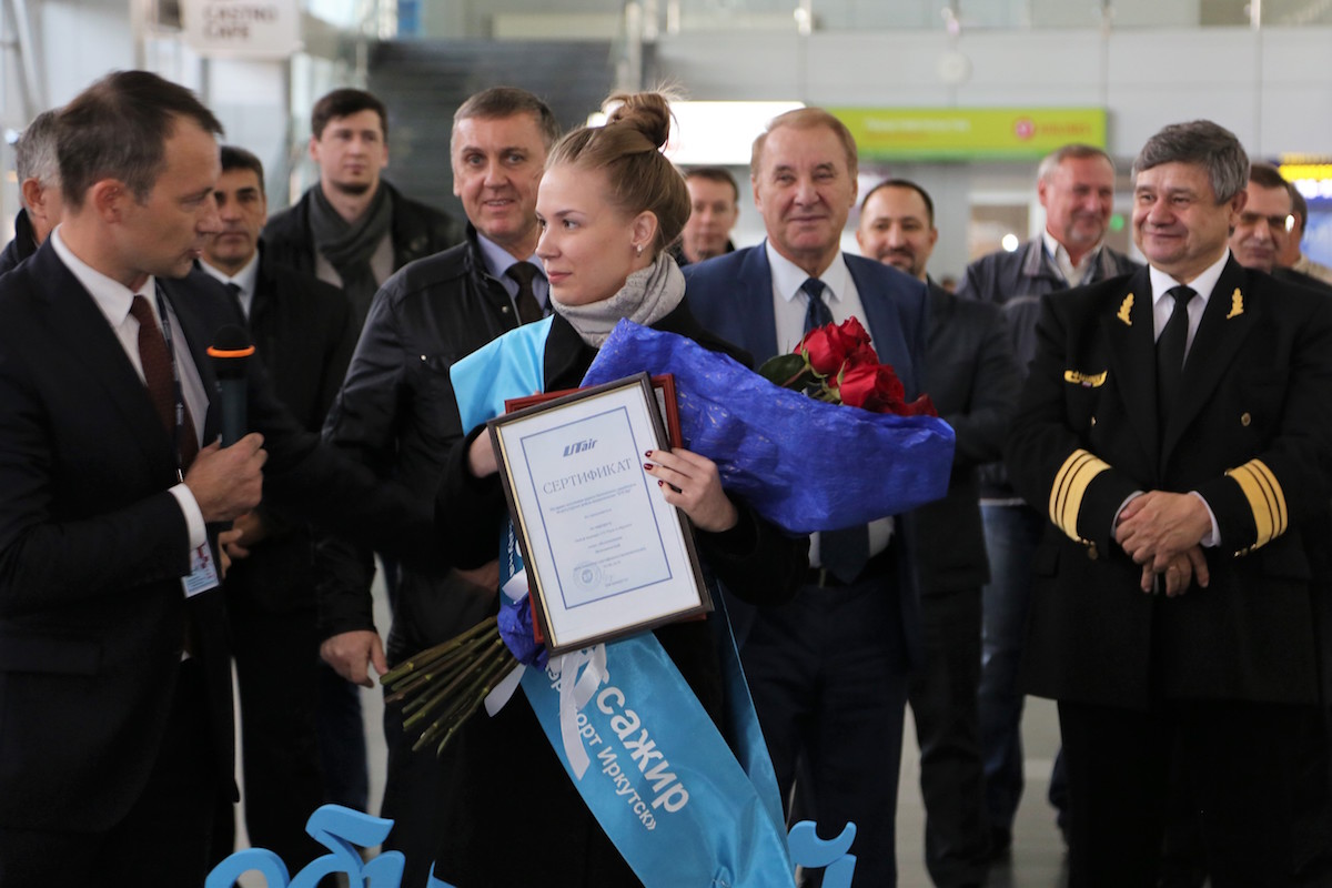 Полуторамиллионным пассажиром иркутского аэропорта в 2017 году стала Виктория Исаева. Рейсом 312 авиакомпании Utair она вылетала в Томск. Виктория из Улан-Удэ, но живет в Иркутске. В Томск она летела к подруге на свадьбу.