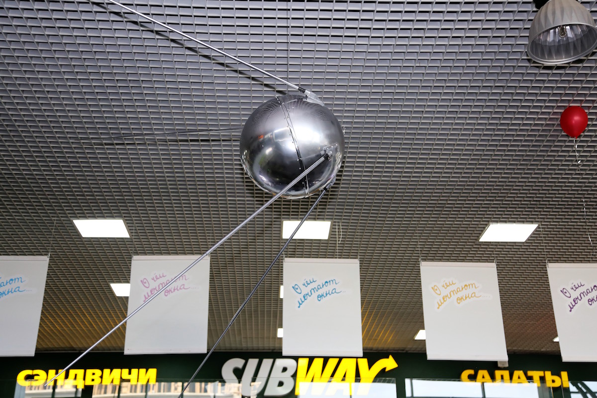 Теперь память об этом дне увековечена в стенах аэровокзала внутренних линий иркутского аэропорта. Макет первого искусственного спутника Земли, выполненный в натуральную величину, установили под потолком здания.