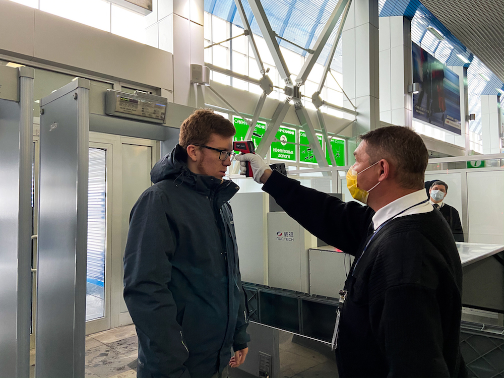 Состояние прибывающих из-за границы пассажиров контролируют специалисты Роспотребнадзора. Наряду с ними с сегодняшнего дня, 20 марта, сотрудники здравпункта аэропорта осматривают пассажиров рейсов, прибывающих из Москвы. Осмотр проводят на борту самолёта, проверяют температуру людей дистанционно при помощи тепловизионного оборудования. В случае обнаружения пассажира с повышенной температурой организуется обработка дезинфицирующими средствами салона воздушного судна и зала прилёта.