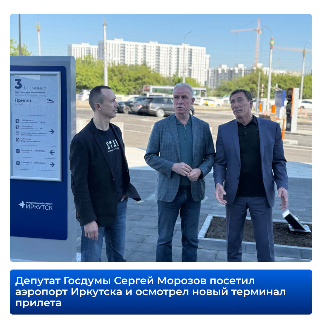 В рамках рабочей поездки депутат Государственной Думы Федерального Собрания Российской Федерации, заместитель руководителя фракции «ЕДИНАЯ РОССИЯ» в Государственной Думе Сергей Морозов в День города Иркутска посетил «Международный Аэропорт Иркутск» и лично ознакомился с ходом подготовки к запуску нового быстровозводимого терминала прилета.