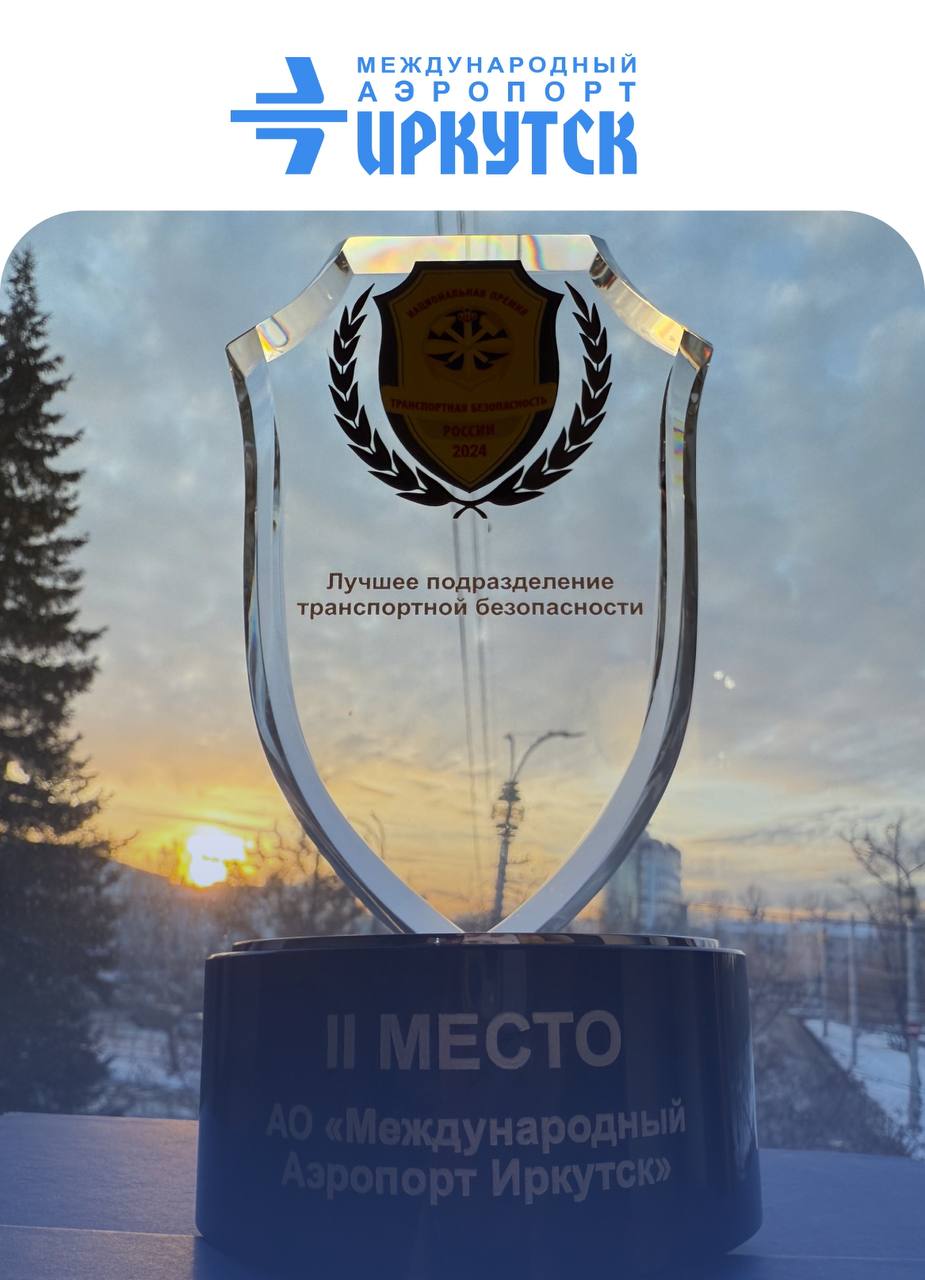 АО «Международный Аэропорт Иркутск» стал лауреатом Национальной премии «Транспортная безопасность — 2024» в номинации «Лучшее подразделение транспортной безопасности».